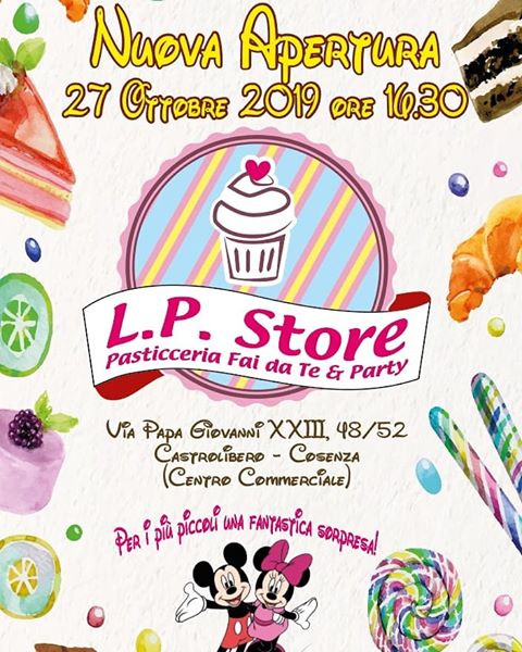 “Dopo un lungo lavoro ventennale condotto dal nostro papà Umberto, L.P. Distribuzione si sdoppia e vende anche al dettaglio inaugurando “L.P. STORE – PASTICCERIA FAI DA TE & PARTY.