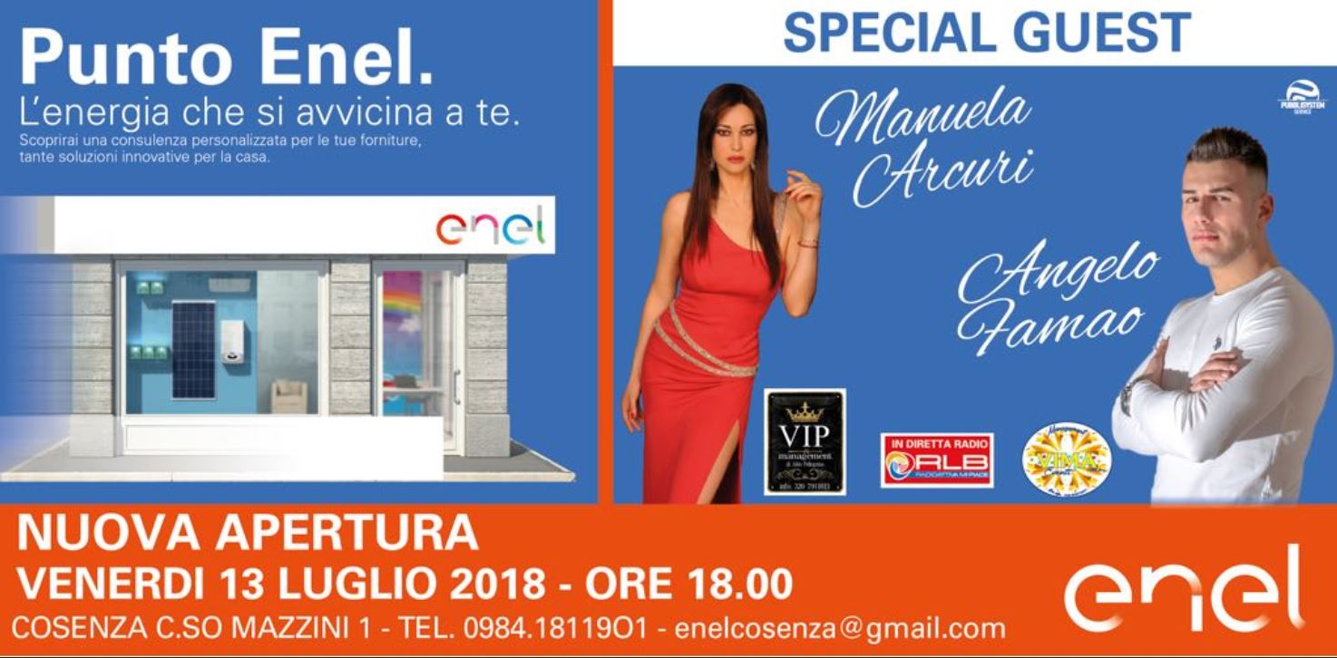 “Vi aspettiamo venerdì 13 luglio per l’Apertura del PUNTO ENEL in Corso Mazzini 1 di Cosenza