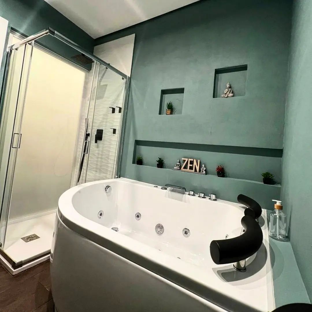 E poi la doccia a vista, la vasca idromassaggio, il morbido cotone delle lenzuola del letto matrimoniale, le luci studiate ad hoc. Tutto in 5 Sensi concorre a creare la cornice perfetta per innamorarsi ogni momento.