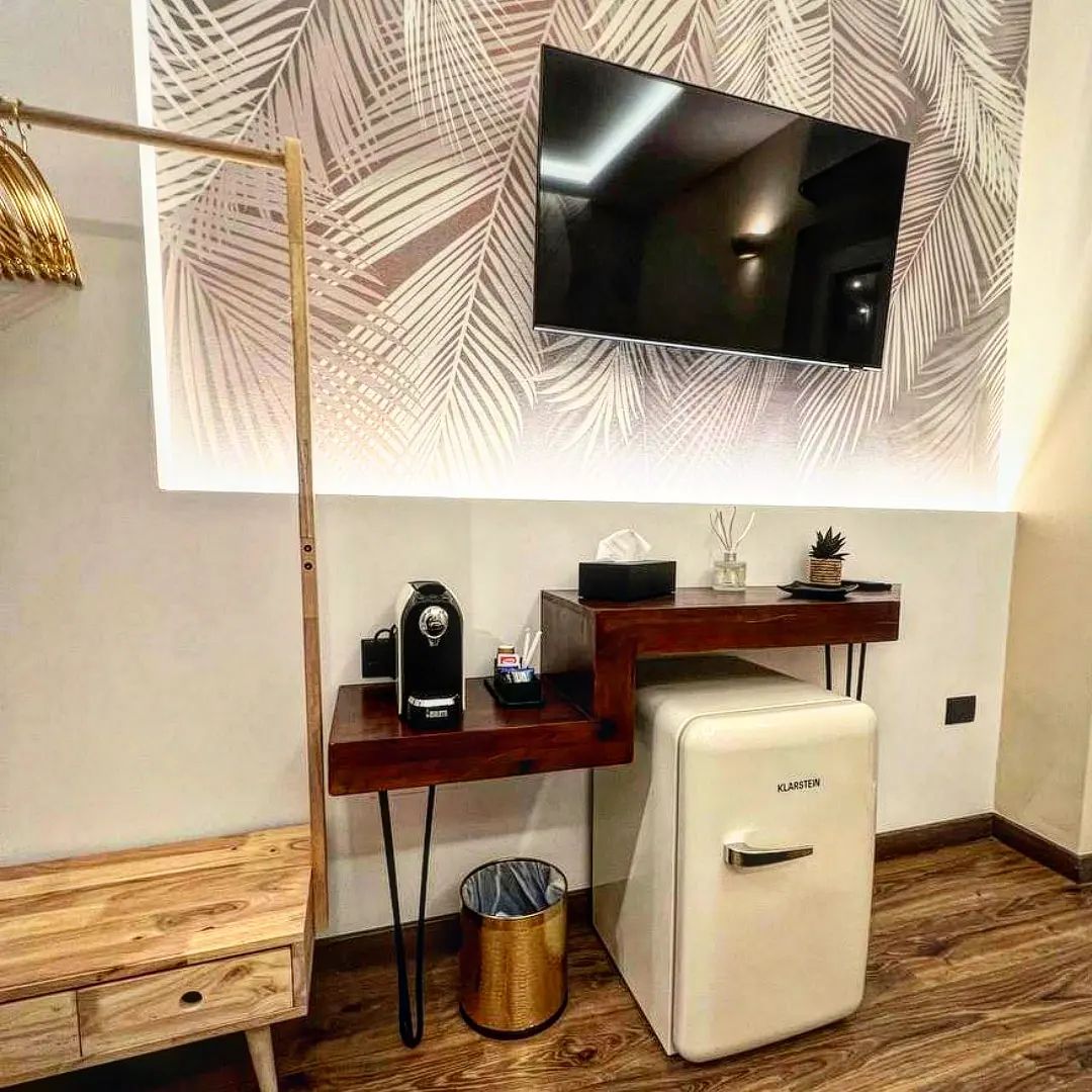 Le atmosfere soffuse di 5 sensi ti accolgono nel comfort della sua camera luminosa, spaziosa, che vi accoglie nei toni caldi del legno e rilassati del bianco. Noterai subito il romantico terrazzino, che rappresenta un angolo speciale tutto da vivere.
