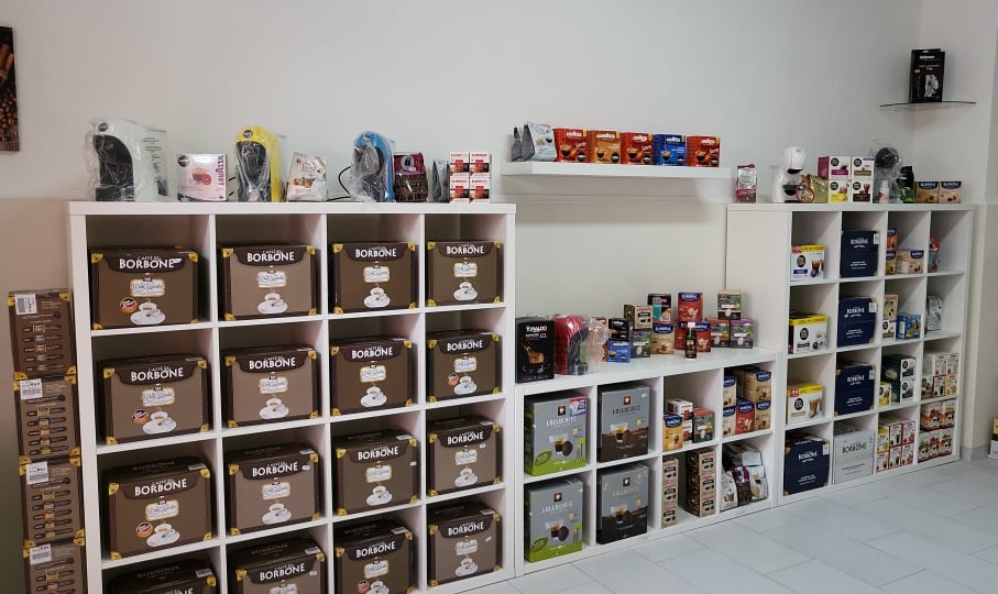 cialde capsule, macinato, chicchi di caffè, macchinette e accessori sempre per il caffè e tante caramelle gommose.