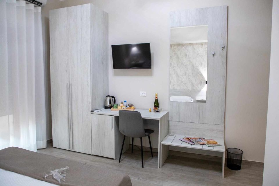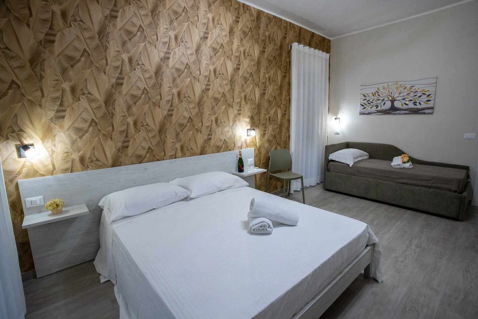 Ogni camera, con bagno privato in ogni stanza, è accessoriato con tutto il necessario: wifi, mini frigo, tv, aria condizionata, cassaforte, asciugacapelli, ecc.