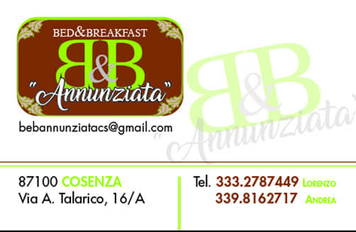 Ha inaugurato oggi, nel centro di Cosenza, precisamente in via Alberico Talarico 16/A, nella zona ospedaliera (a 30 metri dall’entrata principale del pronto soccorso dell’ospedale dell’Annunziata), il “Bed and Breakfast Annunziata”.