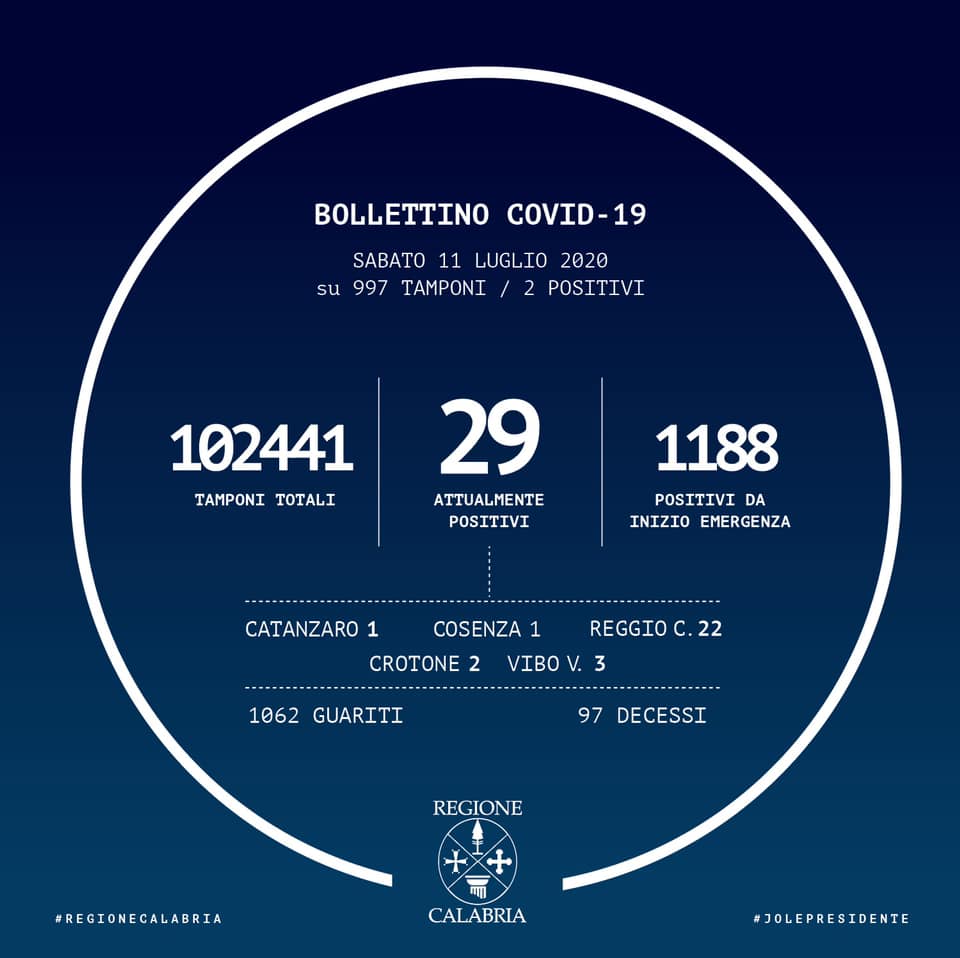 Nel conteggio sono compresi anche i due pazienti di Bergamo trasferiti a Catanzaro, mentre non sono compresi i numeri del contagio pervenuti dopo la comunicazione dei dati alla Protezione Civile Nazionale.”