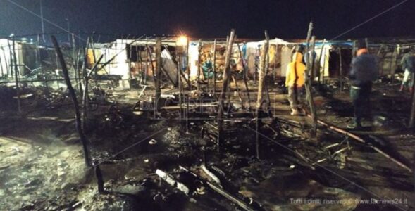 L’incendio ha distrutto decine di baracche e ucciso un senegalese 25enne. Si tratta del terzo rogo in pochi mesi