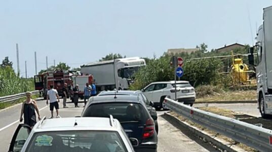 Scontro tra un tir e un furgone: c’è anche un ferito grave. Grossi disagi per la viabilità : file di 7 chilometri in direzione Sud e 5 in direzione Nord
