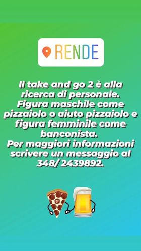 “La pizzeria “Take and Go 2” sita in via Marconi a Quattromiglia (Rende) ricerca: