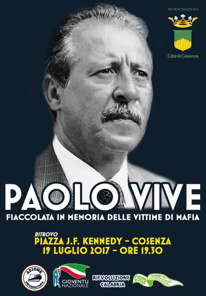 In occasione del 25° anniversario della strage di Via D’Amelio, l’associazione RiEvoluzione Calabria organizza la Fiaccolata della memoria.