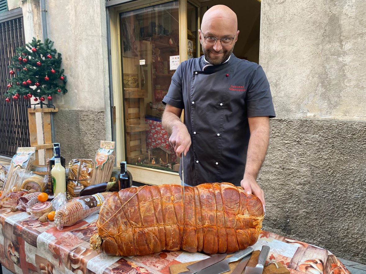 “Oggi taglio della Nduja record di 20 kg a Ventimiglia Alta (IM) presso il negozio di Antonio Versace.