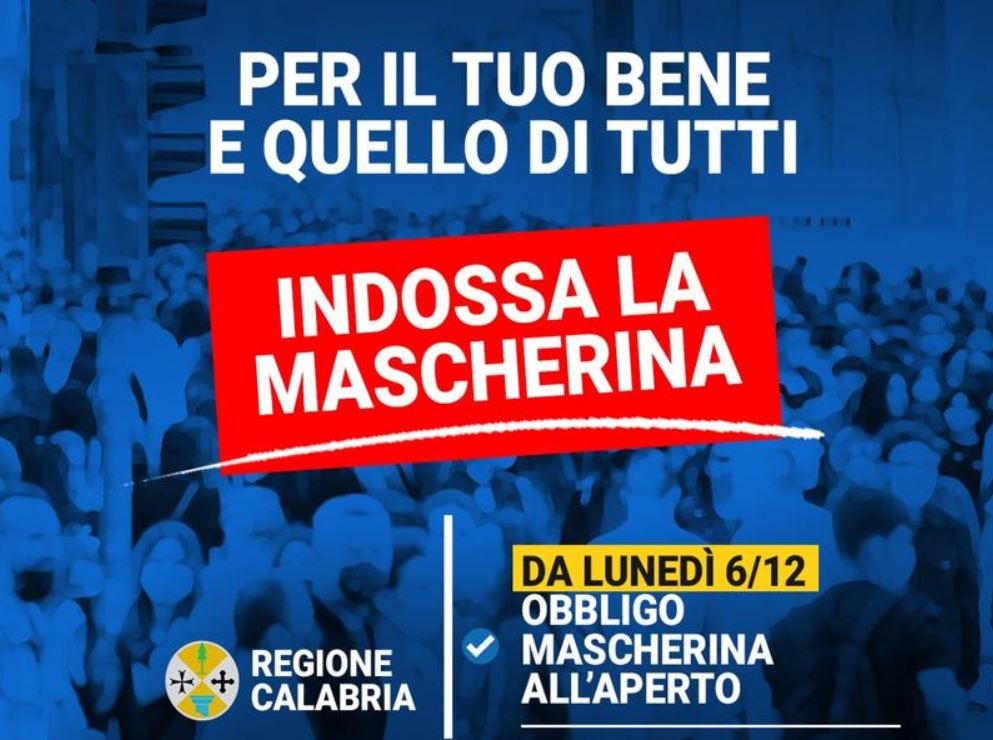 Covid: Occhiuto, da lunedì 6/12 obbligo mascherina all’aperto in Calabria e ‘zona arancione’ per Isola di Capo Rizzuto