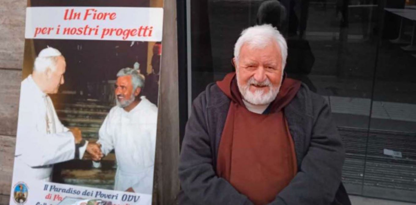 “Il frate s’è rimesso in moto, dopo qualche acciacco, per continuare la sua inarrestabile opera di raccolta di fondi per i più bisognosi. Saio e sandali francescani, il sacerdote sta ricevendo il calore e l’affetto della gente: in centinaia si fermano ogni giorno davanti al piccolo banchetto – con la foto di San Giovanni Paolo II – allestito per sollecitare un piccolo gesto di solidarietà verso gli ultimi.”