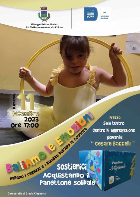 Lunedì 11 dicembre alle h 17, potrete applaudire i talenti, ballerini e ballerine, dell’Associazione Italiana Persone Down Sezione di Cosenza, presso il Centro di Aggregazione Giovanile “Cesare Baccelli” a Marano Principato (Cs).