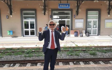 “Il noto produttore cinematografico, imprenditore ed ex patron della Sampdoria, Massimo Ferrero, è stato notato oggi pomeriggio alla stazione ferroviaria di Paola in compagnia degli avvocati Nicola Carratelli e Pietro Sommella.”