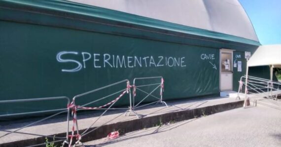 Due le scritte che capeggiano: “sperimentazione” e “cavie”