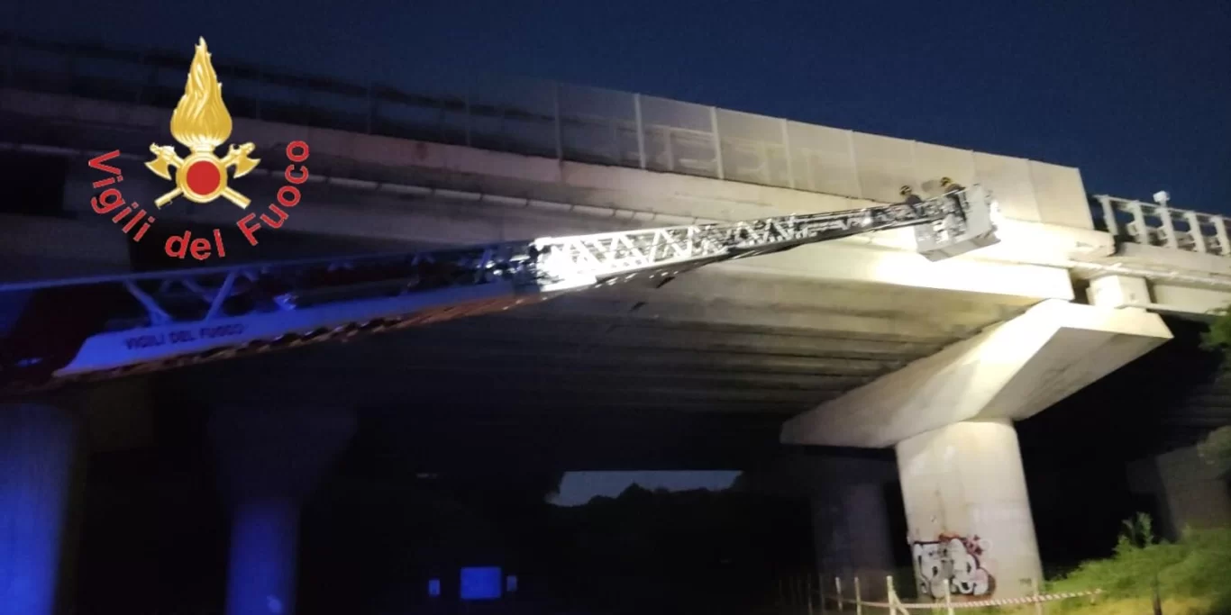 “Squadre dei vigili del fuoco del Comando di Catanzaro distaccamento di Lamezia Terme e sede centrale con supporto di Autoscala sono impegnate nel comune di Gizzeria in località Maiolino, per la rimozione di parti pericolanti di intonaco e calcinacci dal viadotto autostradale della A2 del Mediterraneo.”