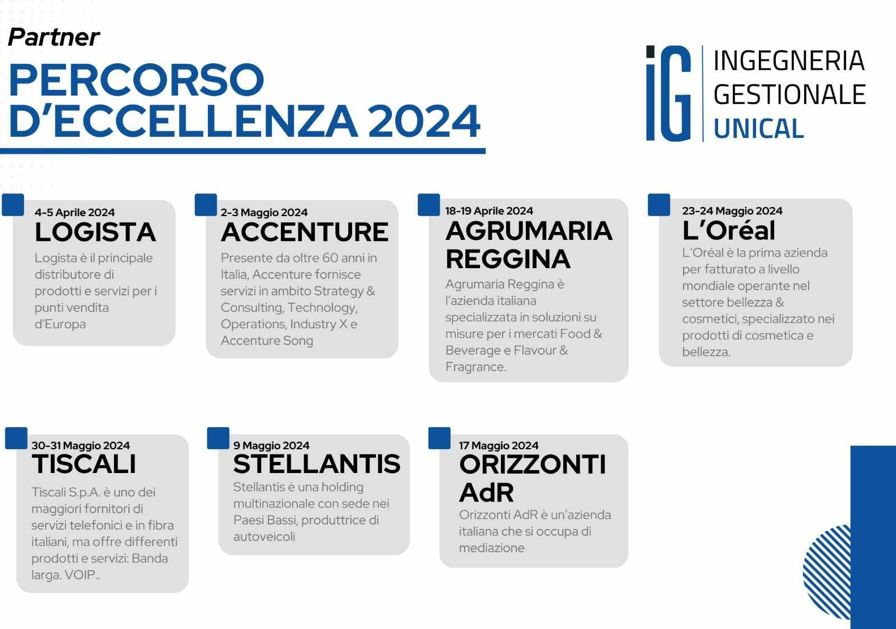 “Questa è la mission del “Percorso d’Eccellenza 2024” del Corso di Studi in Ingegneria Gestionale dell’Unical, coordinato dalla professoressa Giusy Ambrogio che ha un obiettivo ambizioso: far entrare in contatto lo studente con manager e dirigenti d’impresa pronti a trasferire know-how aziendali rendendoli fruibili nel corso di seminari, team working e attività mirate che si svolgeranno nei cubi del campus di Arcavacata.