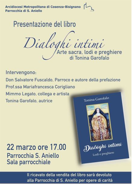 Si terrà martedì 22 marzo alle 17, presso la Parrocchia di S. Aniello di Cosenza, la presentazione del libro di lodi e preghiere “Dialoghi intimi”