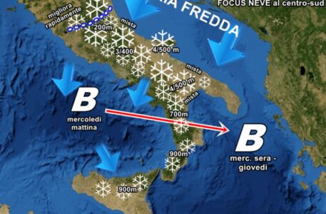 “CALABRIA – SICILIA : maltempo diffuso, con neve oltre i 700-800 metri in Calabria (specie nel cosentino), mentre in Sicilia neve oltre gli 800-900 metri. Possibilità di gragnola alle quote più basse. Sull’Appennino calabrese le nevicate saranno abbondanti e non escludiamo accumuli superiori ai 30-40 cm nella sola giornata di mercoledi.”