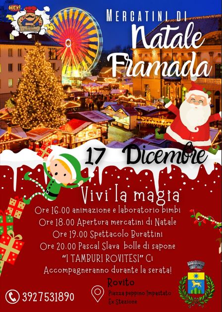 Vi aspettiamo per vivere insieme la magia della prima edizione dei Mercatini Framada: un mix di arte, tradizione, e allegria.