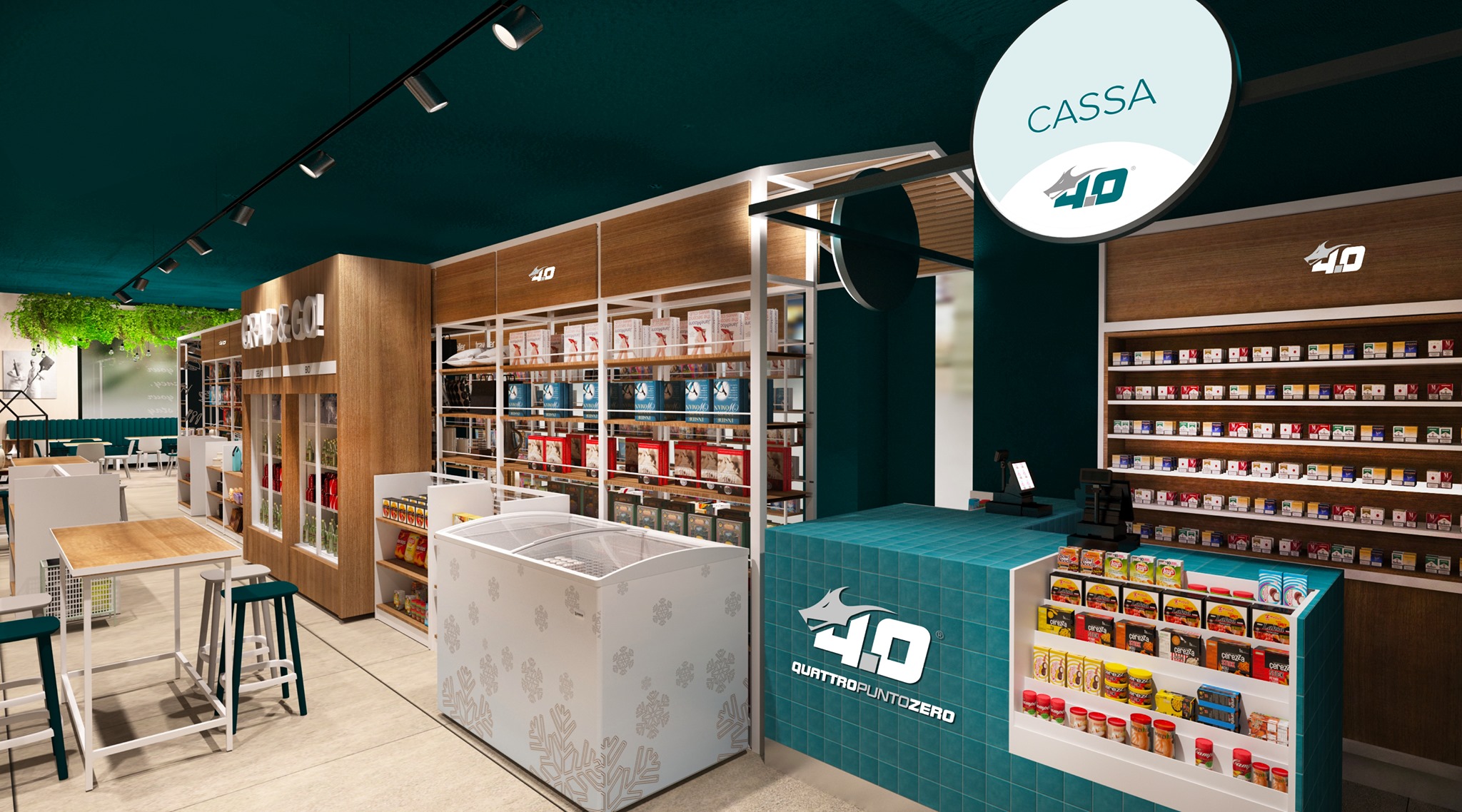 I locali ristoro saranno ingranditi in maniera significativa e realizzati con design moderno e funzionale, nuovi arredi, materiali e colori in linea con il mood QuattropuntoZero.