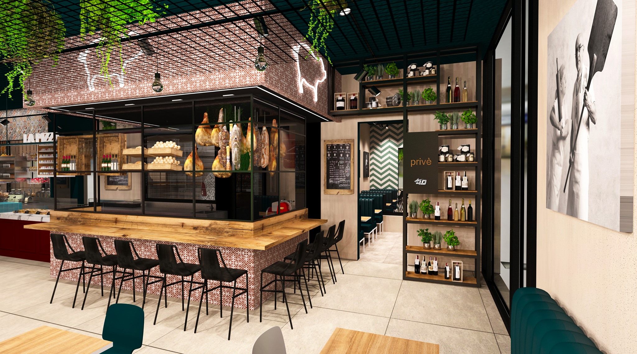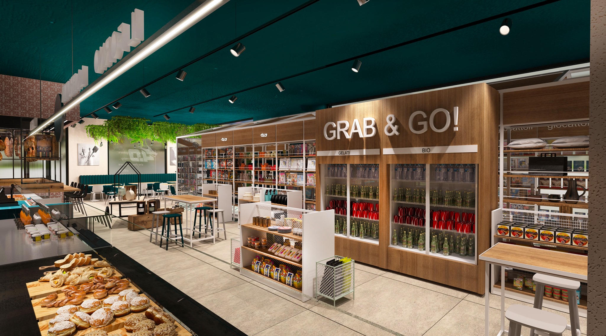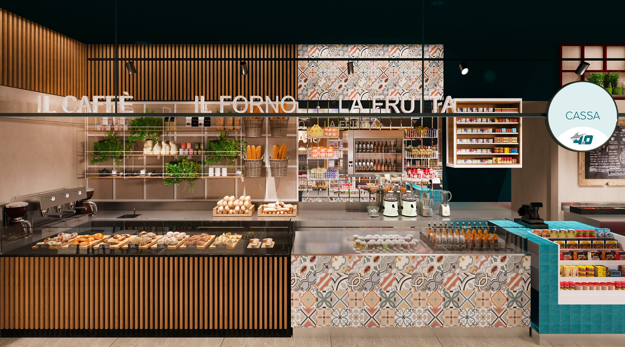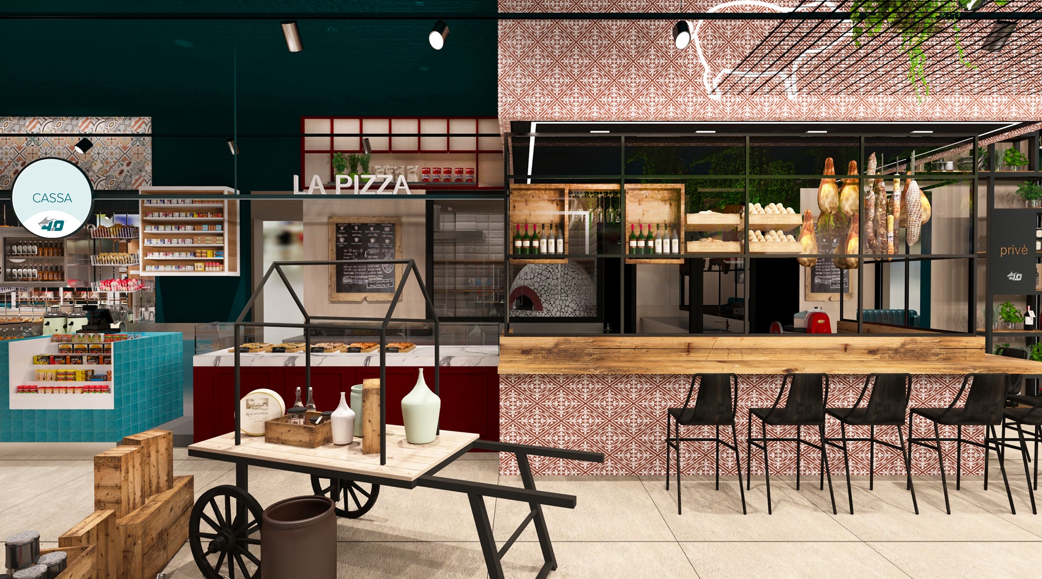 I locali ristoro saranno ingranditi in maniera significativa e realizzati con design moderno e funzionale, nuovi arredi, materiali e colori in linea con il mood QuattropuntoZero.