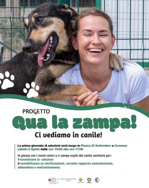“Sabato 6 aprile 2024 dalle 10:00 alle 17:00, vi aspettiamo in Piazza XI Settembre, insieme a noi ci saranno cinque cagnolini ospiti dei canili sanitari di Donnici e Mendicino.