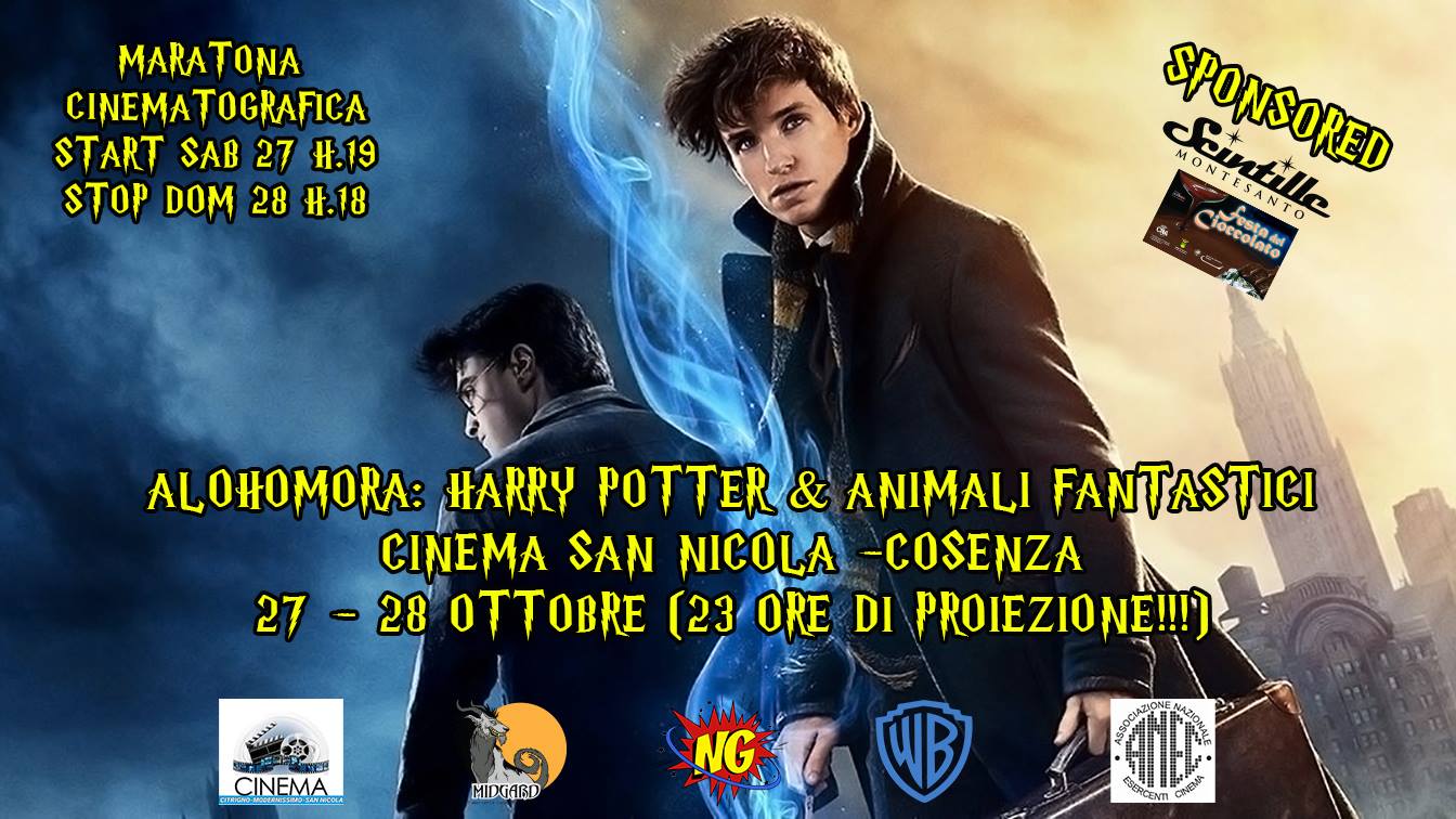 “ALOHOMORA è la maratona organizzata e patrocinata da Cinema Cosenza, Cinema Citrigno Cosenza, Midgard – Fumetteria, Ludoteca & Eventi, Warner Bros. Pictures, ANEC Associazione Nazionale Esercenti Cinema e sponsorizzata da Scintille Montesanto Gioielleria!