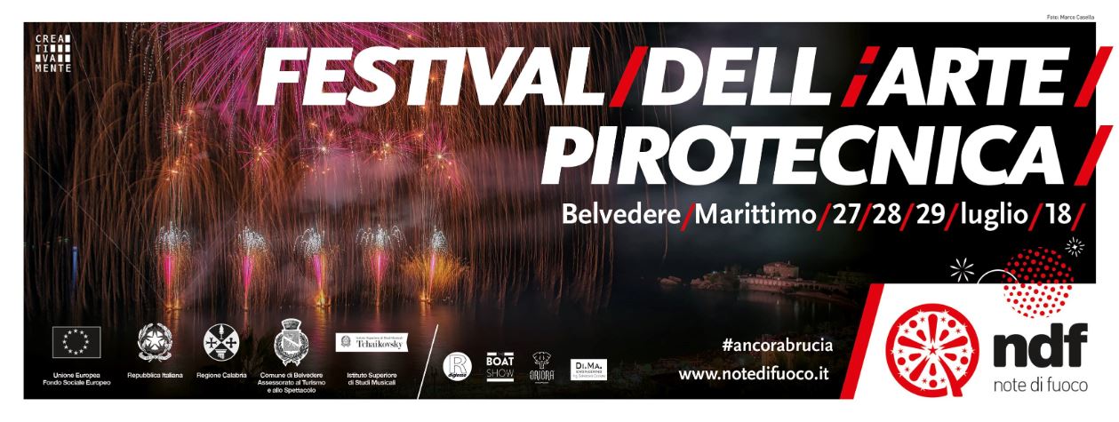 “Anche quest’anno i più grandi maestri Italiani e Internazionali dell’arte pirotecnica, si danno appuntamento nella splendida cornice del Golfo del Tirone a Belvedere Marittimo (Cosenza), dove spettacolari fuochi d’artificio esploderanno a ritmo di musica seguendo un crescendo di emozioni e raccontando ogni giorno un tema diverso. Per l’edizione 2018 gli spettatori potranno godere anche di fantastici fuochi d’artificio diurni prima del tramonto. Nella serata conclusiva del 29 luglio, due tenori su un palco in riva al mare si esibiranno accompagnando con la loro voce lo spettacolo pirotecnico.