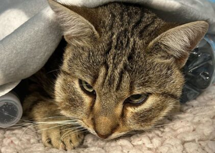 La sua storia è quella che si ripete troppo spesso ormai: lui è un giovane gatto di strada, ritrovato in gravissime condizioni e portato allo studio veterinario del dottor Gianni Marinacci quasi morto qualche giorno fa. È stato ricoverato estremamente disidratato e ipotermico. Ha cominciato a respirare male, è stata fatta rx torace da cui si evince abbondante versamento ed è stato drenato.