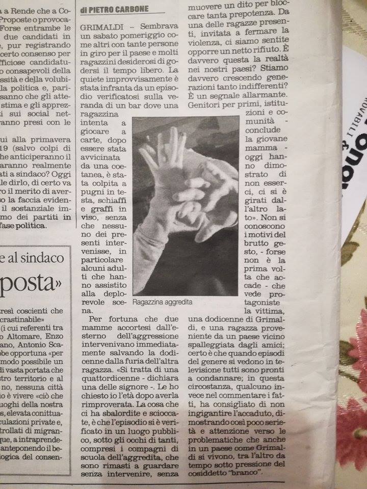 “E’ successo sabato pomeriggio ad una ragazzina 12enne del paese, intenta a giocare a carte in un bar del centro a Grimaldi.