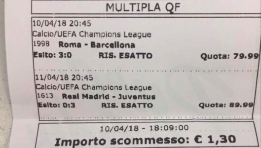 Ovviamete “cambiato” fino ad un certo punto, si fa per dire, …ma immaginate a 18 anni …liceale di Rende… il coraggio di giocare modesti 1,30 € su un risultato definito più che impossibile alla vigilia… e vedersi sfumare tutto ad un passo del traguardo.