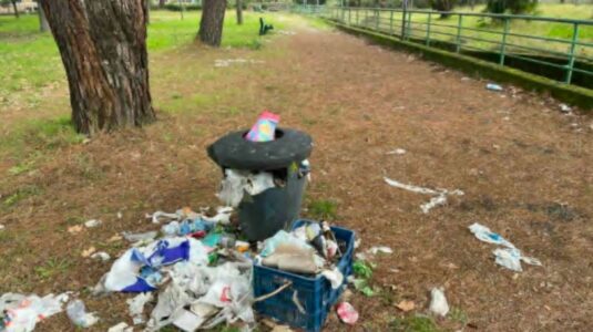 I genitori dei piccoli alunni lamentano anche la presenza di siringhe oltre alla spazzatura lasciata vicino agli appositi contenitori