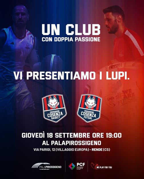 Nel corso dell’evento, verranno svelati gli assetti societari, lo staff tecnico e l’organico della neonata squadra di basket per la sua prima storica stagione 2025/2026, che la vedrà ai nastri di partenza del campionato di Serie D, e della squadra di futsal, alla vigilia della terza partecipazione consecutiva alla Serie A. Sarà anche l’occasione per parlare delle iniziative dei progetti We Play For You e PirossigenoChanging Future, fortemente voluti dalla società per valorizzare il territorio e costruire una rete mirata ad ampliare le potenzialità delle eccellenze locali.