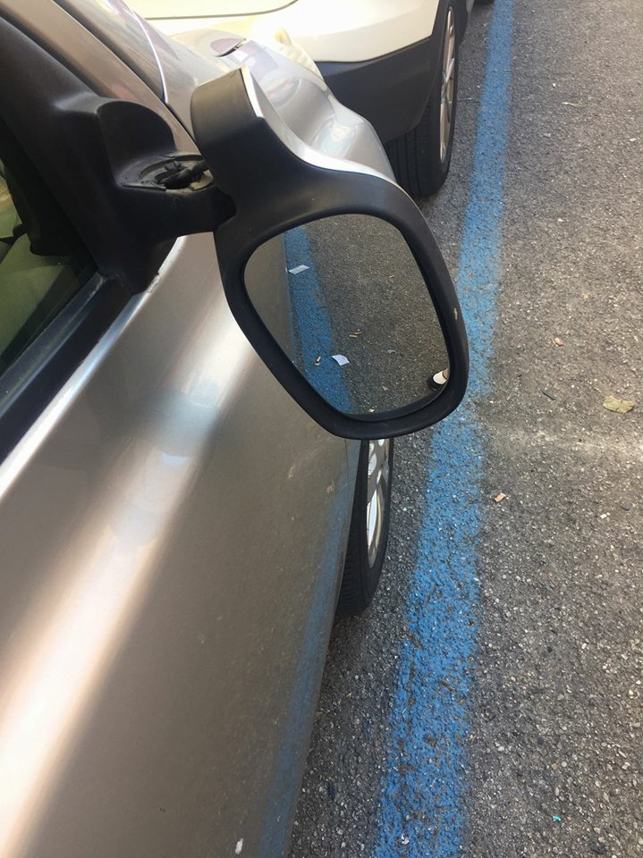 Sicura di non aver assolutamente toccato nessuno, ed in un primo momento impaurita, ho ingranato la marcia ed ho ripreso la corsa, ma dopo pochi metri, causa traffico, è arrivato di nuovo l’uomo dalla macchina e questa volta, prima scendendo e poi prendendo a pugni il mio specchietto fino a romperlo (vedi foto).