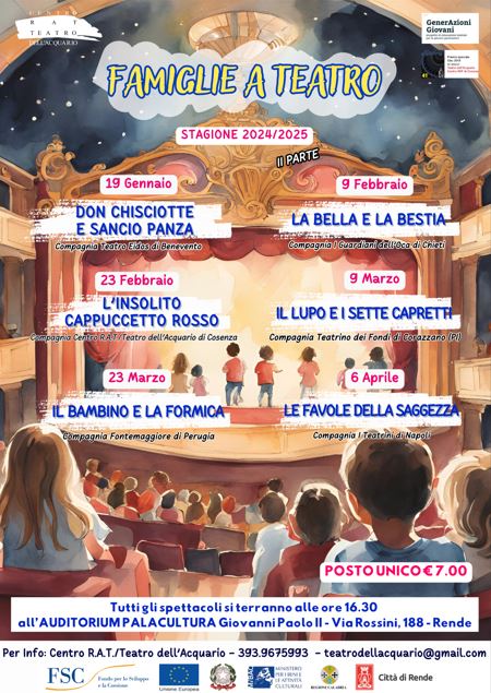Tutti gli spettacoli si terranno all’AUDITORIUM PALACULTURA Giovanni Paolo II – via Rossini, 188 – Rende.