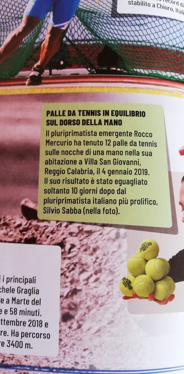 – Il maggior numero di palle da tennis tenute in equilibrio sul dorso della mano (12)