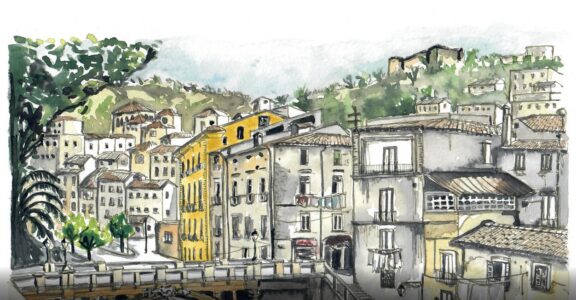 “Uno degli angoli di Cosenza che profumano maggiormente di storia, il Ponte dei Pignatari, farà bella mostra di sé il prossimo 23 febbraio a Roma, nelle sale di Palazzo Ferrajoli. Il disegno porta la firma di Maria Fernanda Pellecer Sandoval, artista di origini guatemalteche, italiana di adozione, profondamente legata alla Calabria.”