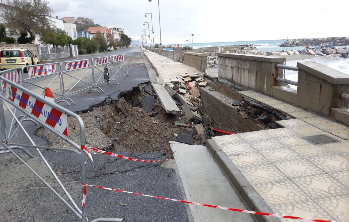 “Profonda e con un diametro che supera i 3 metri. E’ l’ennesima voragine che si è aperta sul lungomare di San Lucido (Cosenza) in conseguenza delle violente mareggiate abbattutesi negli ultimi giorni sulla costa con inaudita violenza.”