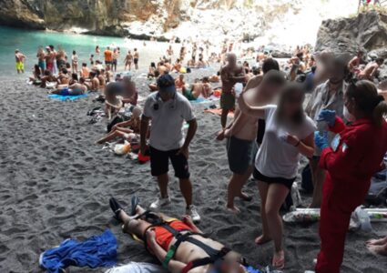 “E’ stato trasportato in elisoccorso anche se non era in pericolo di vita. Non è ancora chiaro se il giovane abbia tentato di tuffarsi in acqua dalle rocce scoscese presenti nell’area turistica di pregio, o se sia semplicemente scivolato”