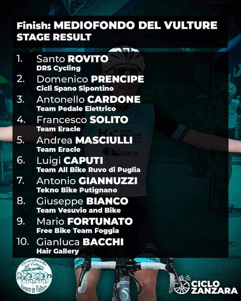 L’atleta cosentino si impone per distacco nella “Mediafondo del Vulture”. Un traguardo storico, celebrato dal team con queste parole: