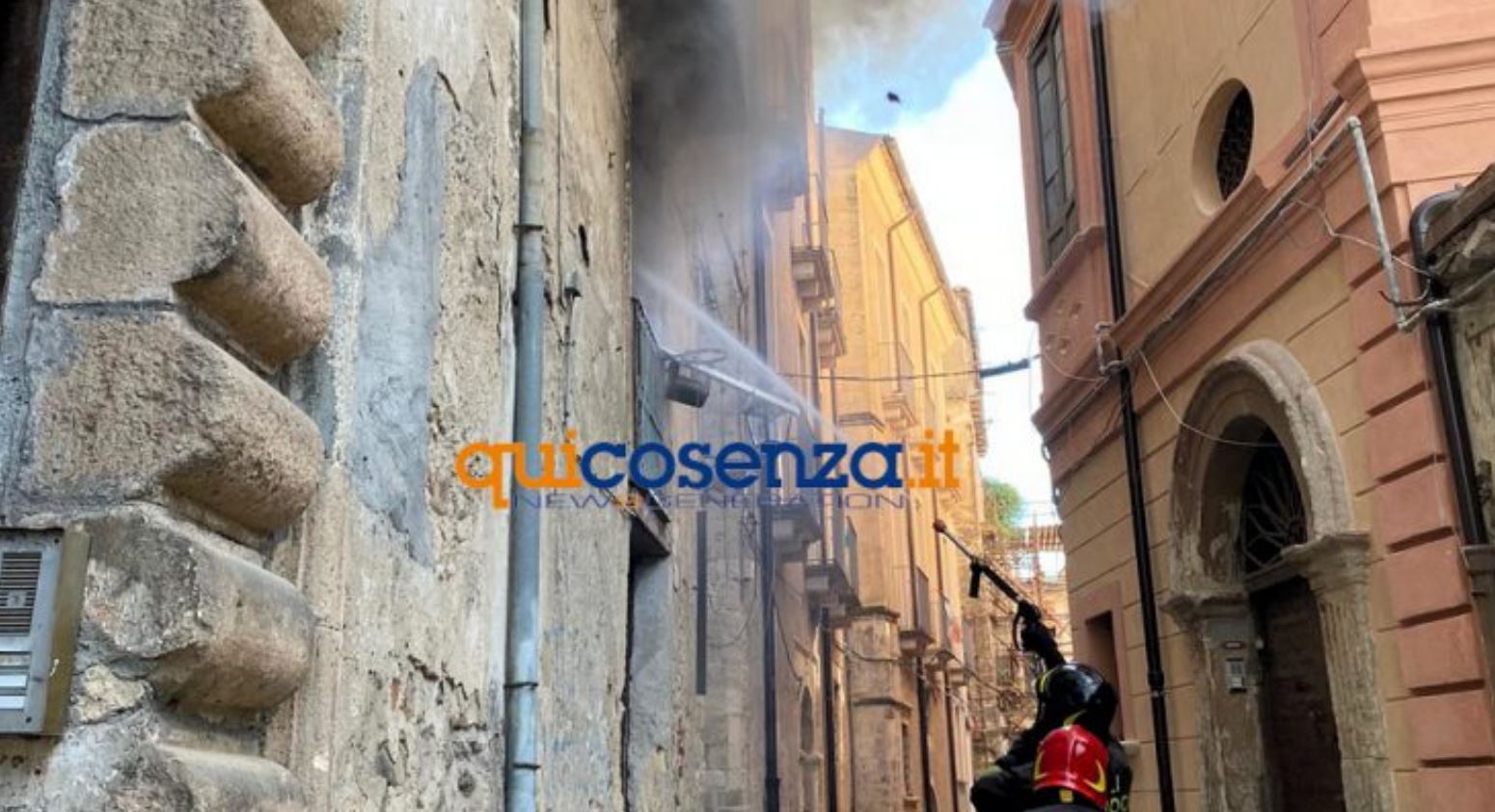 “Un rogo, prontamente spento dall’immediato intervento di due squadre dei vigili del fuoco del comando provinciale di Cosenza, è divampato all’interno di un appartamento disabitato in uno stabile situato in piazza Piccola”