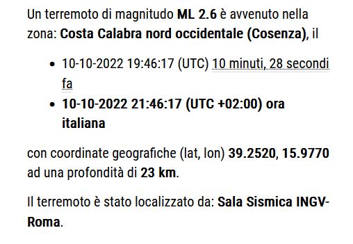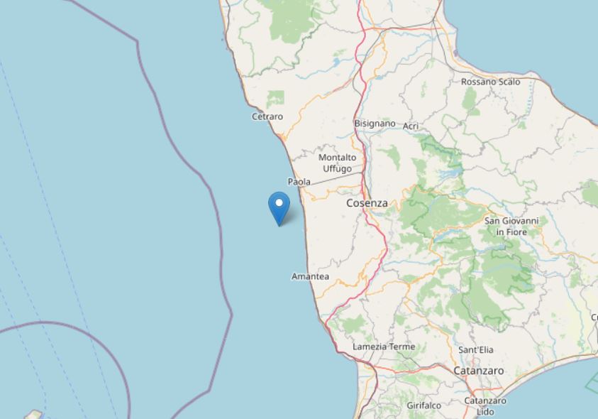 “Un terremoto di magnitudo ML 2.6 è avvenuto nella zona: Costa Calabra nord occidentale (Cosenza), il