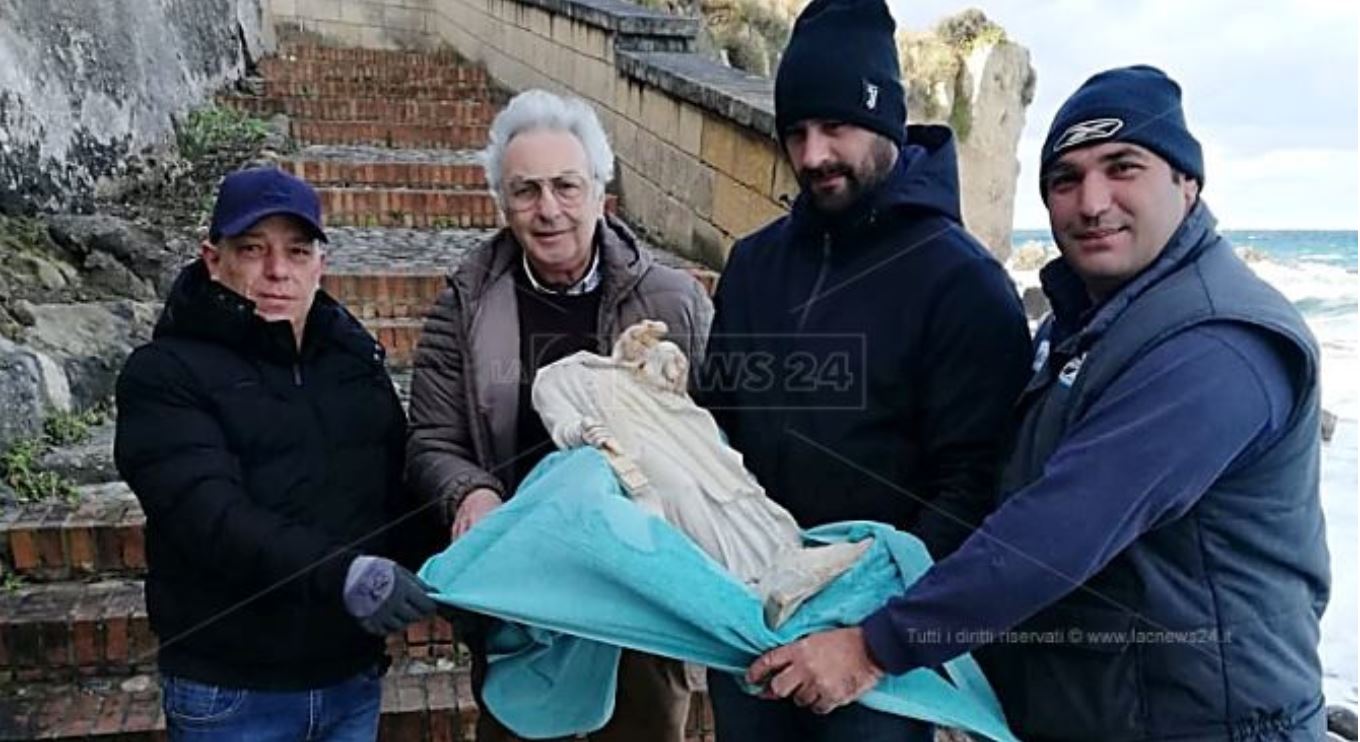 “Tonino Gaudioso, artista di Zungri, ha offerto la sua disponibilità per ripristinare la Madonnina del mare, l’effige collocata in una grotta nei pressi della spiaggia di Briatico, danneggiata da ignoti nei giorni scorsi (articolo danneggiamento QUI).”