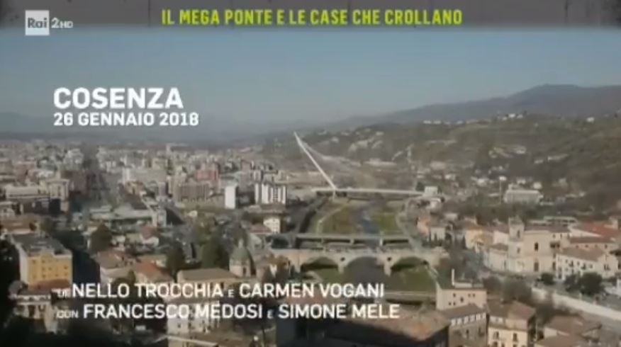 Poco fa, durante la trasmissione televisiva di Rai 2 “Nemo – nessuno escluso”, si è parlato di Cosenza …con il titolo: “Il Mega Ponte e le case che crollano”