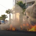 Sesta tappa del Giro d’Italia, i lavoratori delle Terme protestano in “diretta”