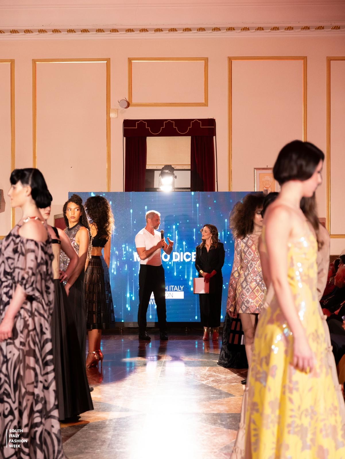 Anche Mario Dice nel corso della sfilata per South Italy Fashion Week ha mostrato la cifra delle sue creazioni: casual e raffinate, sobrie e divertenti, eleganti e dinamiche. Un sovrapporsi di stili contemporanei con uno sguardo verso un passato e verso il futuro con un utilizzo poliedrico della pelle unito alla ricchezza dei ricami effetto tattoo, segno distintivo delle sue collezioni. La maison Mario Dice nasce nel 2007 dopo un’esperienza ventennale di sperimentazioni e formazione. Dice ha all’attivo collaborazioni con la maison Calvin Klein a New York. Dopo l’esperienza negli Stati Uniti che ha segnato profondamente il suo percorso formativo, in Italia ha affiancato le sorelle Fontana e ha collaborato con le più prestigiose case di moda italiane tra cui Gattinoni, Trussardi Krizia e David Koma.