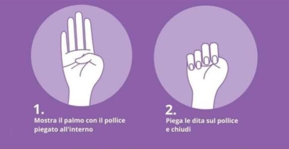 Bisogna mettere il palmo della mano davanti a sé, in modo che sia bene visibile a chi ci sta di fronte (magari durante una videochiamata), piegare il pollice all’interno e poi chiudere le dita come si trattasse di fare “ciao”. A questo punto, chi vede il segnale, deve subito avvisare il centro antiviolenza, contattando il numero 1522 oppure le Forze dell’Ordine. È un modo silenzioso e discreto di chiedere aiuto. E speriamo che questo “Universal hand signal” possa iniziare a fare la differenza.