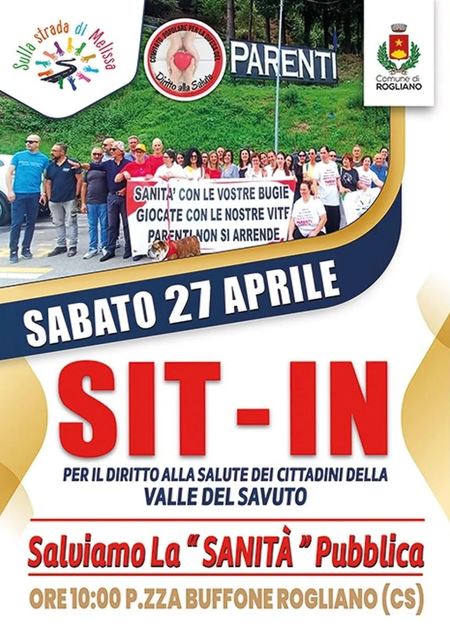 Domani, sabato 27 aprile, dalle ore 10:00, in piazza Buffone a Rogliano (CS), l’associazione ‘Sulla strada di Melissa’, con la partecipazione del Comitato regionale per la difesa del diritto alla salute, ha organizzato un sit-in per difendere, tutti insieme, il Santa Barbara di Rogliano