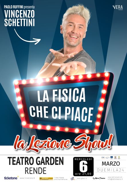 Trasformerà il palcoscenico in una grande aula scolastica, in cui tutti gli spettatori saranno di nuovo allievi, per una lezione tanto affascinante da diventare un viaggio travolgente. Il nuovo e originalissimo spettacolo, targato Vera Produzione e presentato da Paolo Ruffini, arriva a Rende grazie a L’Altro Teatro di Gianluigi Fabiano e Giuseppe Citrigno. Tra esperimenti di fisica e suggestioni varie che questa magnifica materia può esercitare nel nostro quotidiano, il pubblico verrà coinvolto in un’esperienza (teatrale) unica e immersiva.