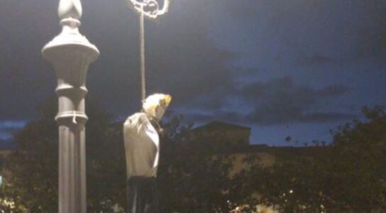 “Un fantoccio impiccato ad un lampione nella centralissima piazza della Repubblica a Pizzo. Al feticcio attaccato un cartello con su scritto: “Strangolati dalla dittatura sanitaria”. È questa la singolare protesta, messa in atto da mani anonime”